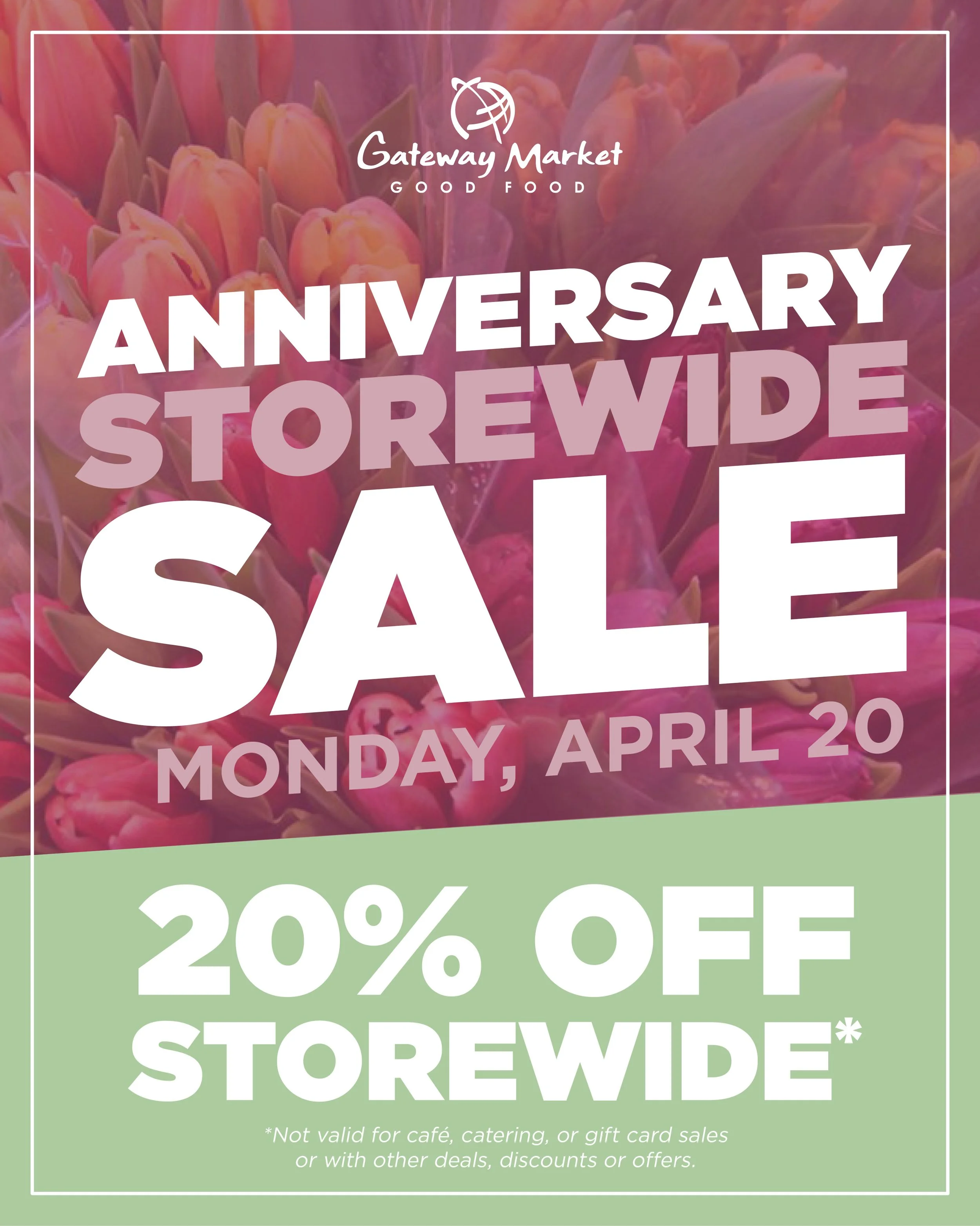 Stop by Gateway Market on Monday, April 20 for a special one-day-only savings event.